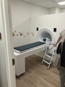 MRIを撮る際に、不安が強くなったり怖がる子どももいるそうで、なんと、MRIの検査に慣れる為の練習用の機会がありました。本物と同じように稼働し本物と同じ音を出すそうです。「練習」が重要になると話されていました。