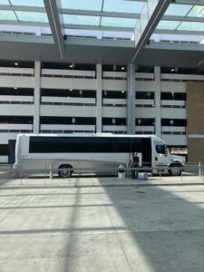 空港に専用バスが来るとのことで、しばらく待っていました。「もしかしたらあのバスかな、、、」「いや、あのバスは違うと思います」などと話していると、運転手の方が声をかけてくれました。